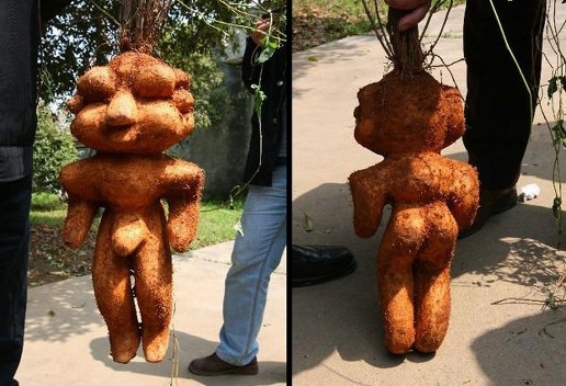 It is just a normal plant that anyone can hardly notice but when you pluck it up to its roots, YOU WILL BE AMAZED to see a human like replica rootcrop! It is like a sculpture of a human- has eyes, nose, mouth, ears and even genitals. I don't know if this kind of plant really has root crops like the one below but it seems every pictures posted on the site where I got it are all the same, except others are in a sitting position (laugh)